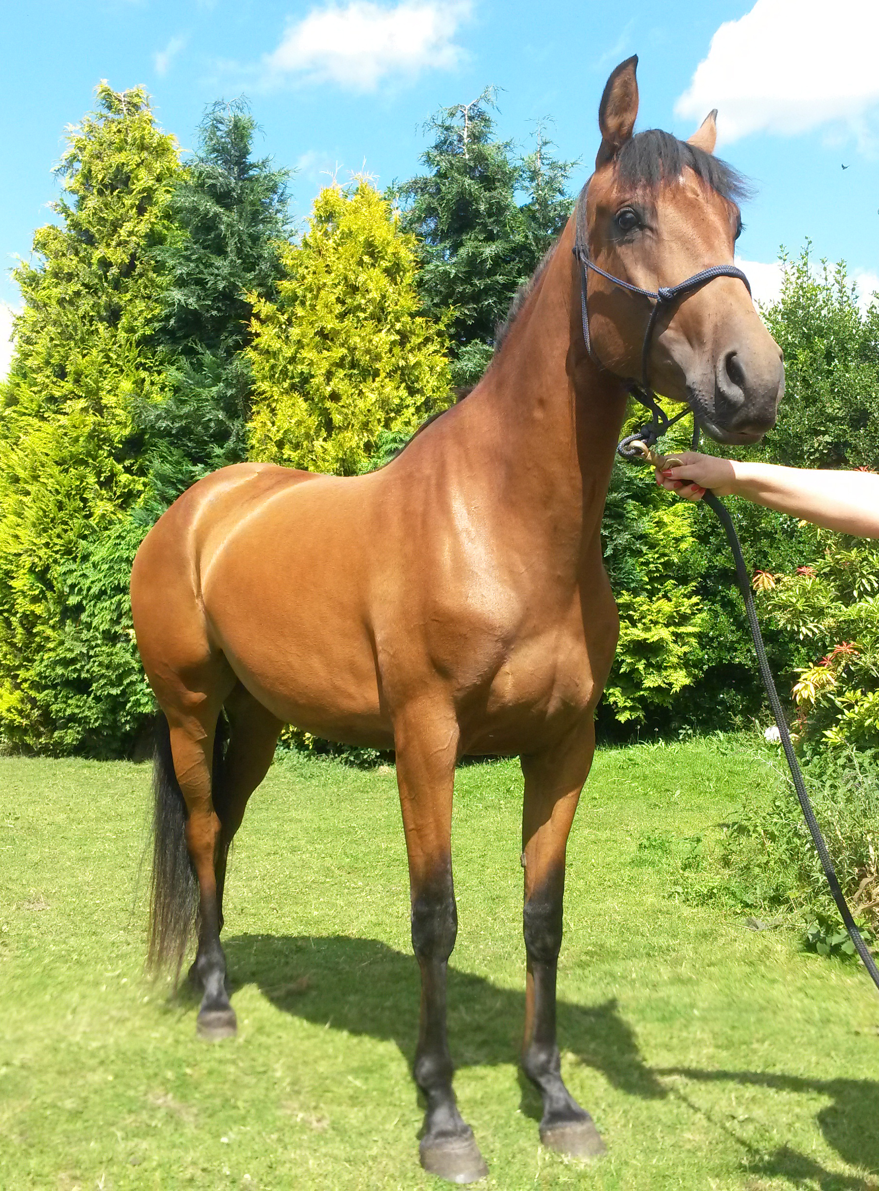 level EGB mare, Sports Horse graded sire. Sweet natured bright bay mare, well handled, good with farrier but not
